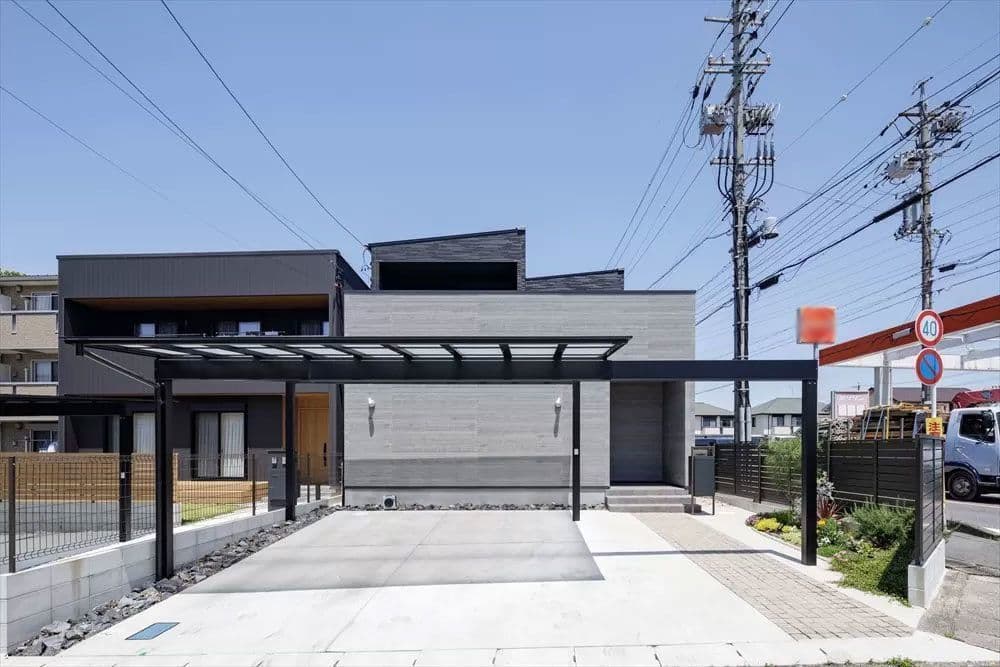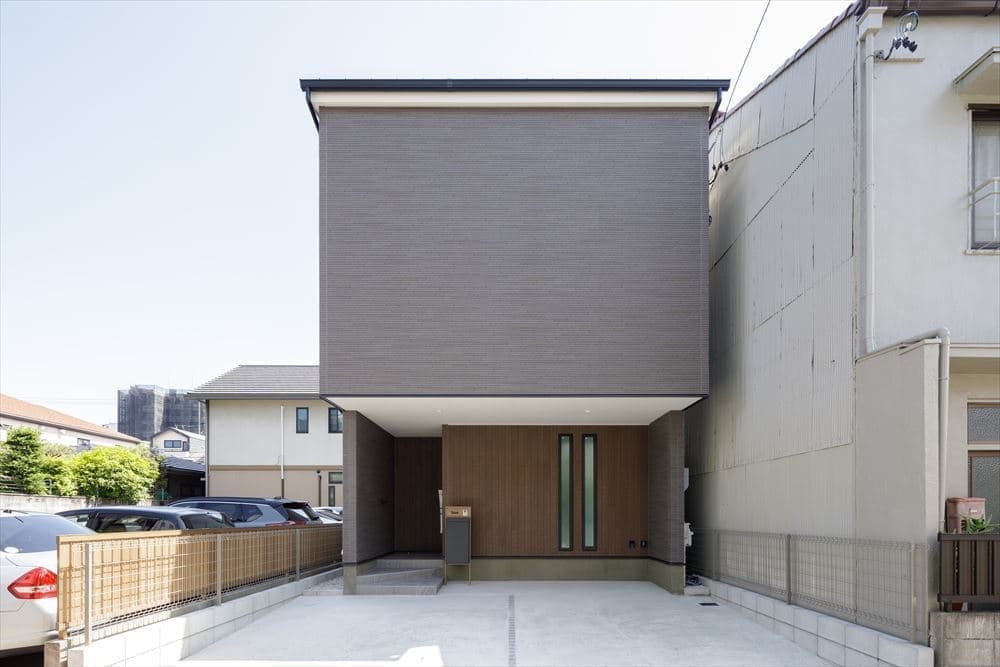 2台分の車を家の中に駐車できるビルトインガレージを設けた「ガレージハウス」です。ガレージの間口は5.46m、奥行5.56mと、在来木造では不可能な空間です。